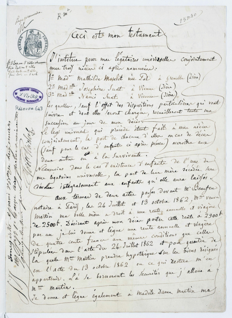 Le testament authentique offre des garanties que ne permet pas un testament olographe. Il est établi en minute et conservé par le notaire. Il est également inscrit au Fichier Central des Dispositions de Dernières Volontés, ce qui garantit que son existence sera connue lors du règlement de la succession.